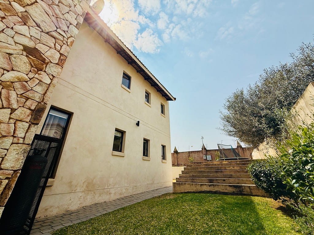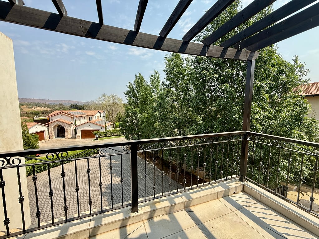 Upstairs, all three bedrooms are designed with comfort and serenity in mind. The main bedroom opens onto a private balcony overlooking the lush back garden and pool and includes a spacious walk-in closet and a luxurious en-suite bathroom with both a bath and a shower. The second bedroom also enjoys access to this balcony, while the third bedroom features its own private balcony with views over the front garden. Each bedroom is fitted with exquisite built-in cupboards, and a second full bathroom completes the upper level.