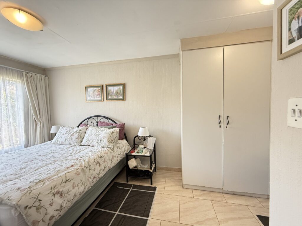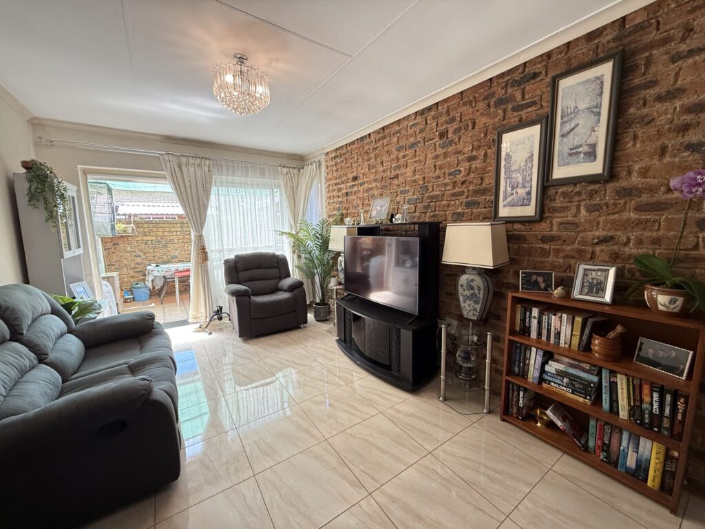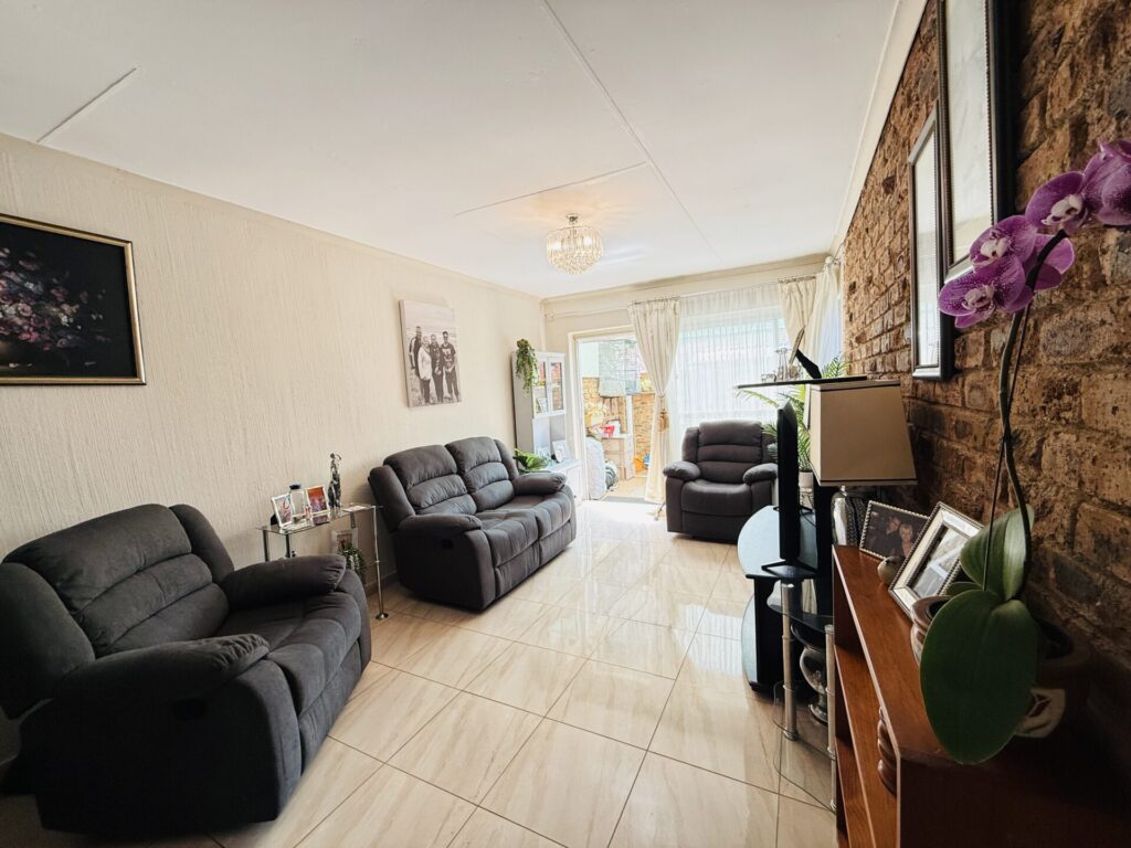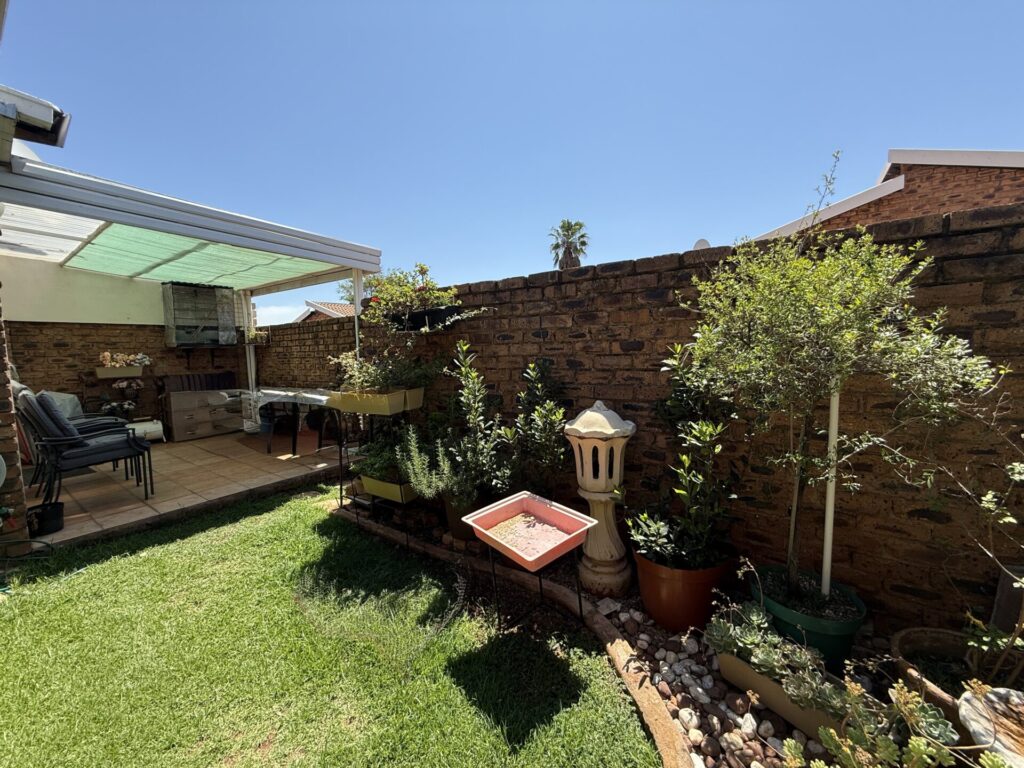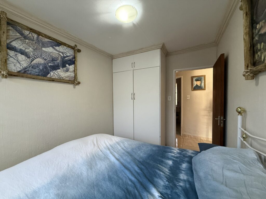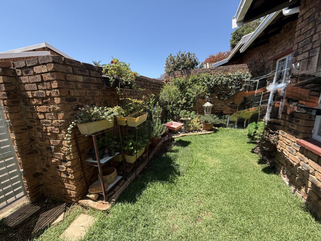 Inside, you’ll find a bright, open-plan living space. The stylish kitchen flows seamlessly into the dining and living area, which extends onto your covered patio and serene garden. The main bedroom is a spacious retreat with built-in cupboards (BIC) and a private en-suite bathroom featuring a bath. The comfortable second bedroom is a double with BIC. A second family bathroom offers a modern corner shower.