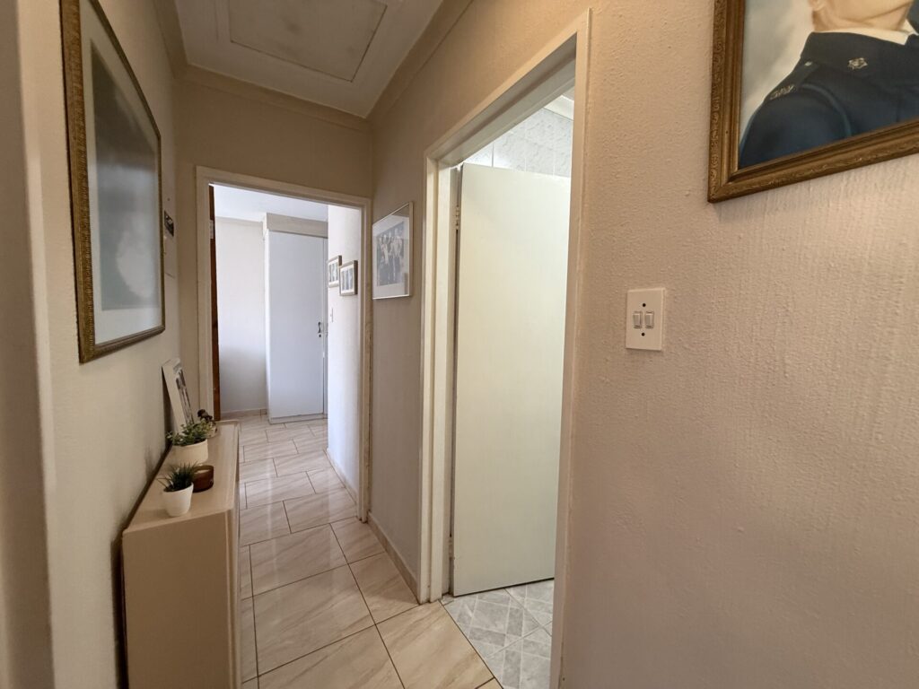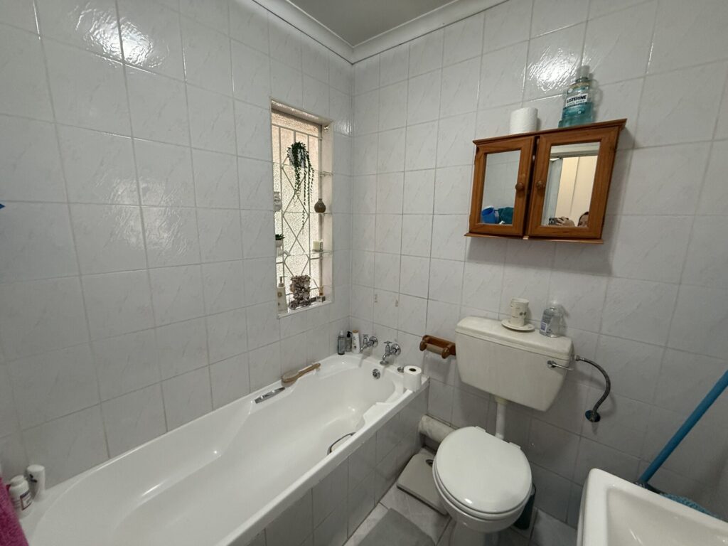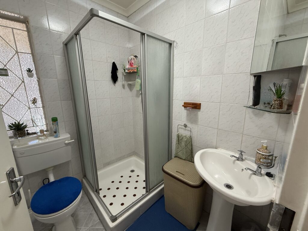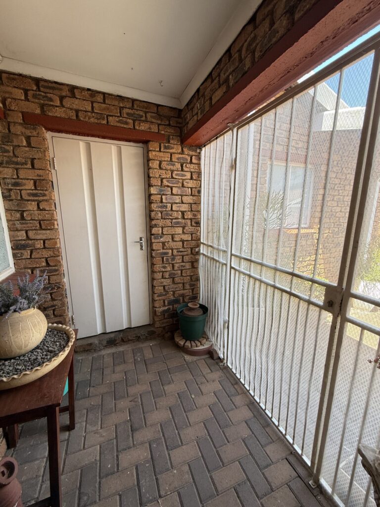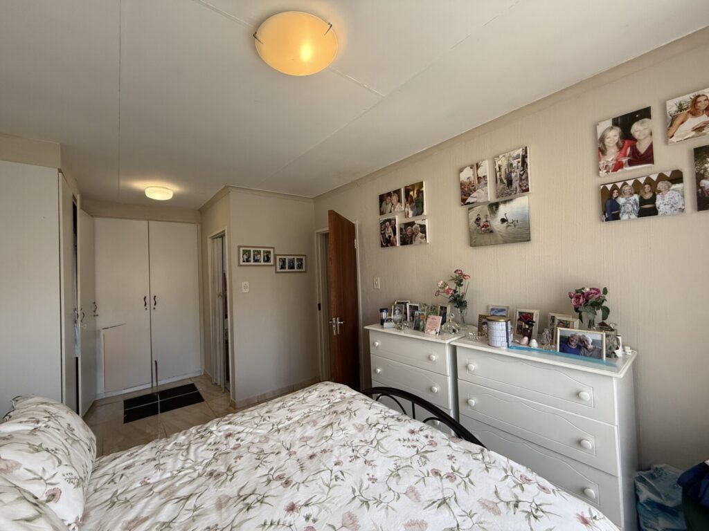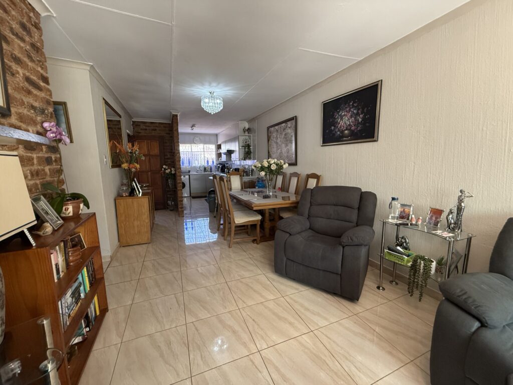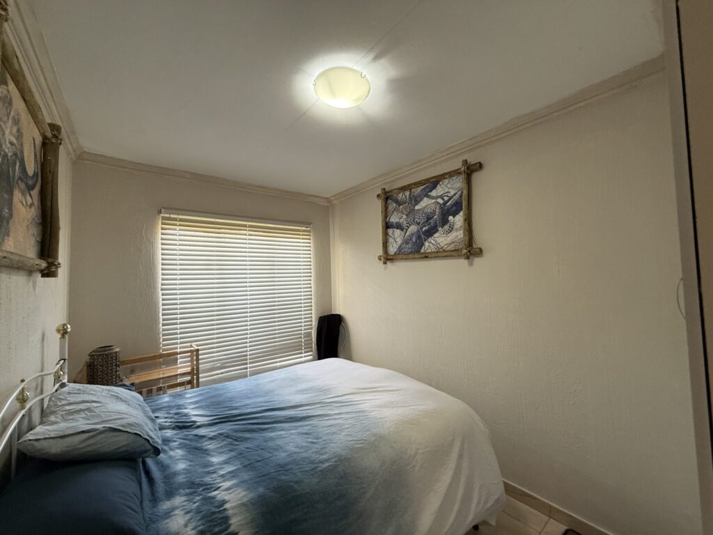 Inside, you’ll find a bright, open-plan living space. The stylish kitchen flows seamlessly into the dining and living area, which extends onto your covered patio and serene garden. The main bedroom is a spacious retreat with built-in cupboards (BIC) and a private en-suite bathroom featuring a bath. The comfortable second bedroom is a double with BIC. A second family bathroom offers a modern corner shower.