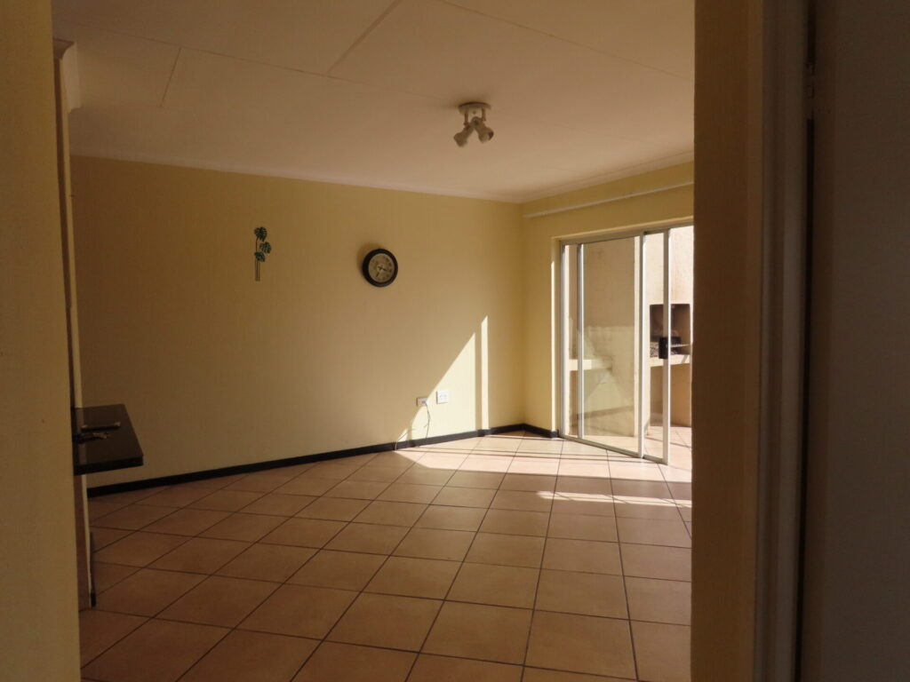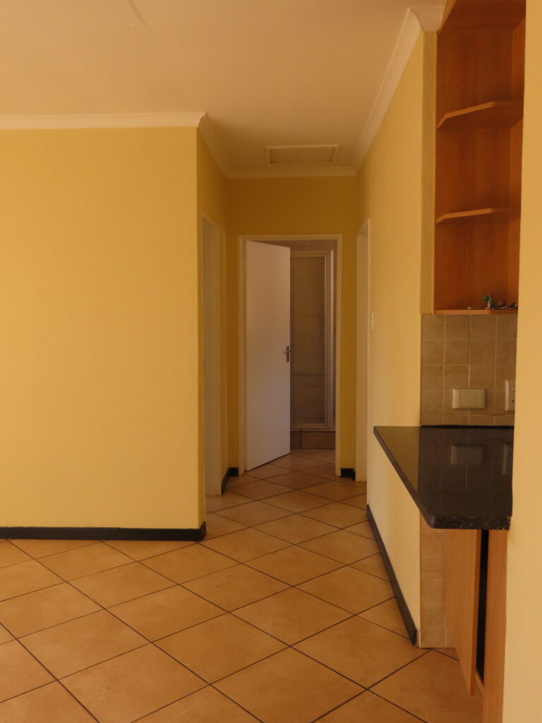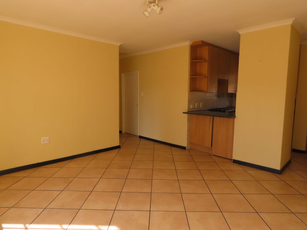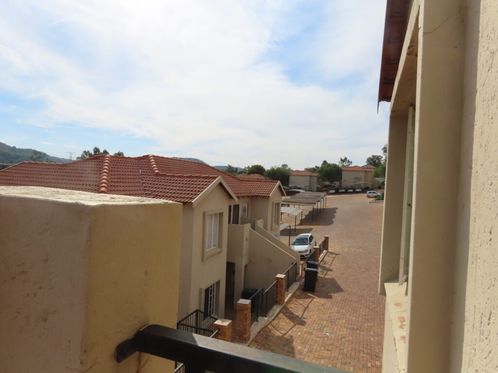 An upstairs apartment situated in a sought-after areas close to Sovereign road (Strauss avenue) which leads to all major roads and shopping precincts. The complex is in Wilgeheuwel Ext 23 but borders Honeydew.